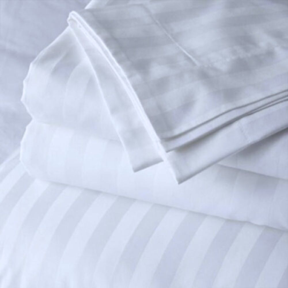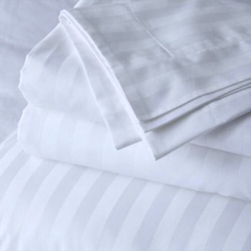 Choose this 100% damask sheet if you value quality, elegance, and long-lasting performance. This pure white, striped damask sheet is a refined base for immaculate bedding and relaxing sleep.